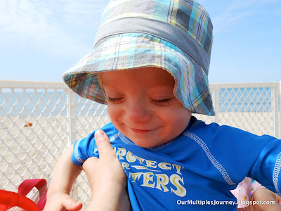 The beach resulted in mixed reviews by the babies. Jenna, of course, LOVES it. The girls LOVED it too! The boys? NOT fans!!!